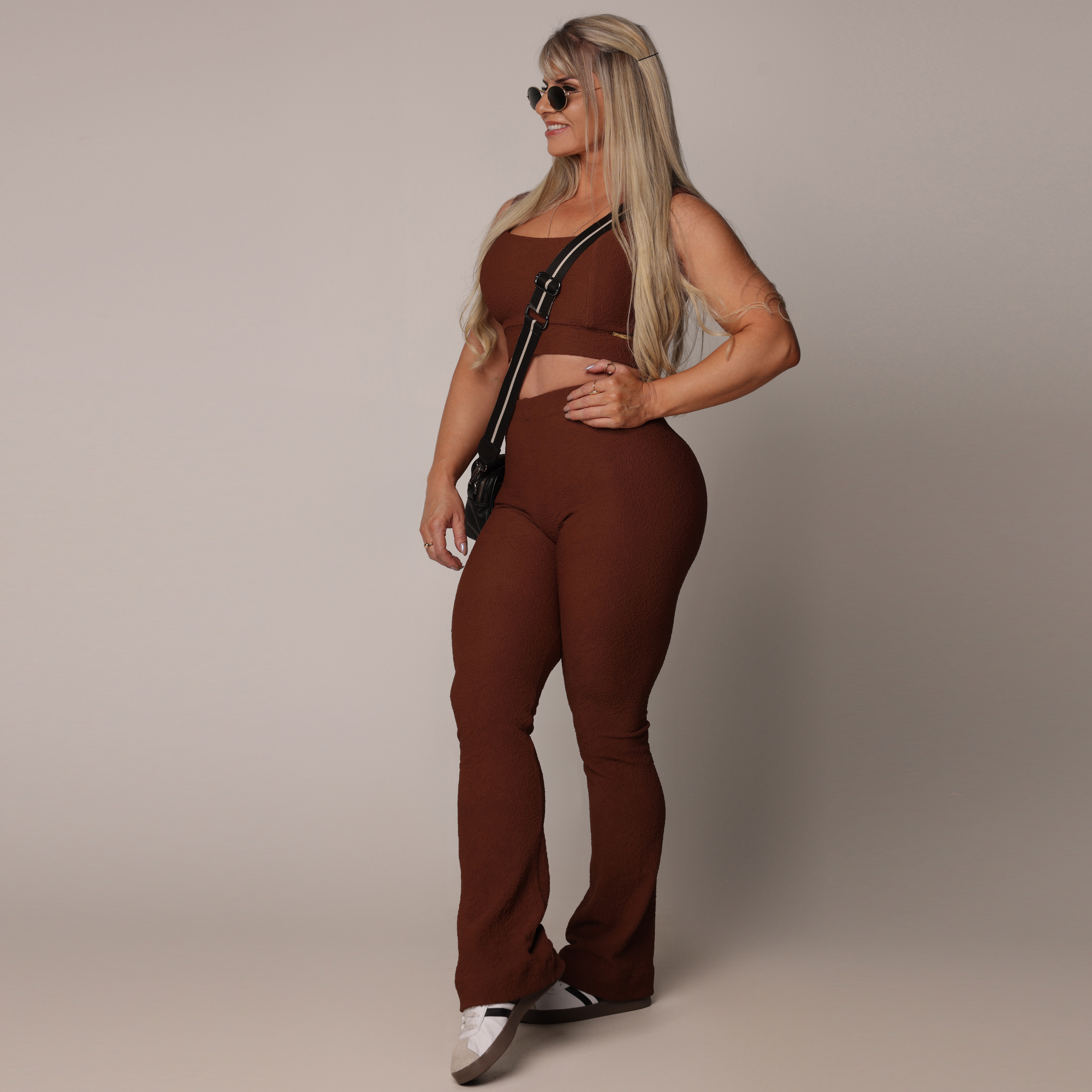 CALÇA FLARE JACQUARD MARROM + TOP