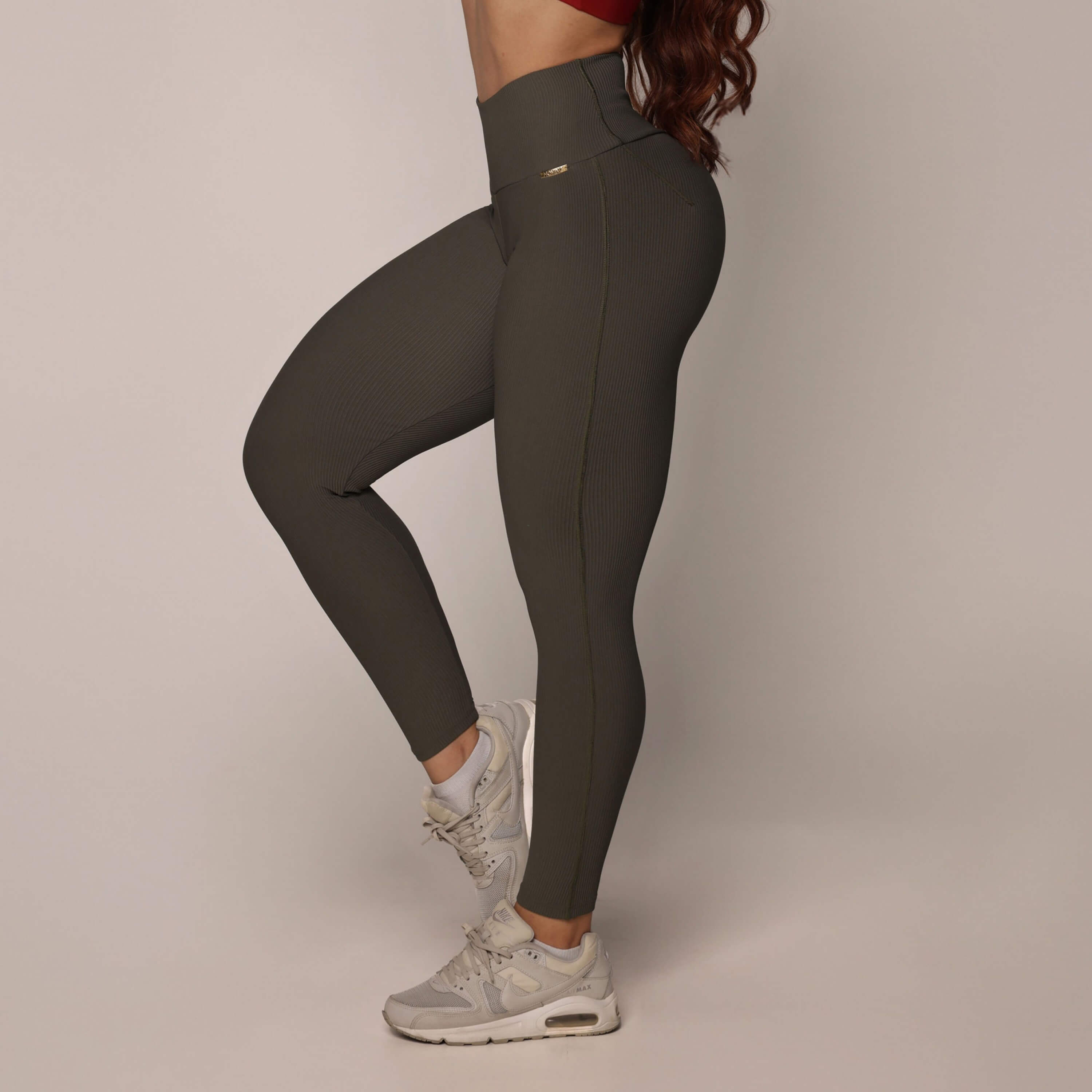CONJUNTO TOP + LEGGING VISION JACQUARD CANELADO VERDE MILITAR
