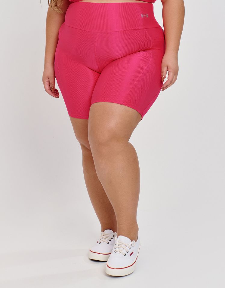 Bermuda Canelada Plus Size com Bolso, na cor rosa pink, é confeccionada em tecido microcanelado de poliamida com efeito glossy acetinado, que oferece um brilho sofisticado e moderno. Com compressão média, ela é a escolha ideal para treinos de alto impacto como crossfit, funcional e corrida, proporcionando conforto e segurança em cada movimento.