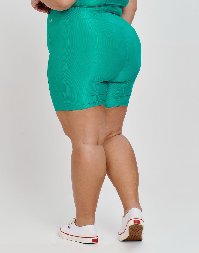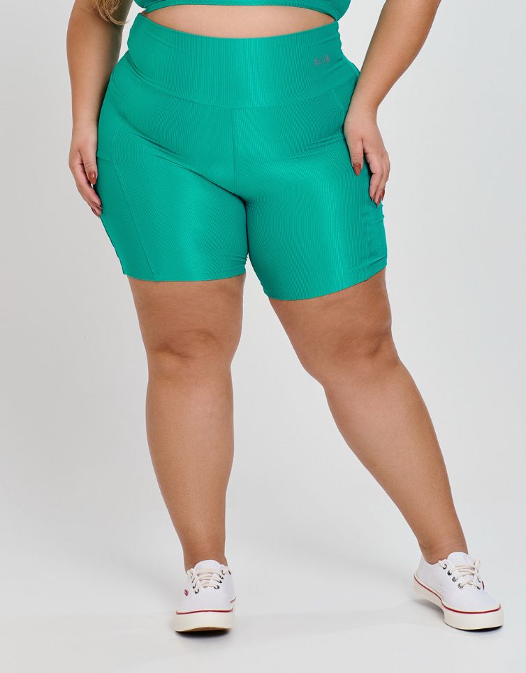 Bermuda Canelada Bolso (Plus Size) - Verde Enseada