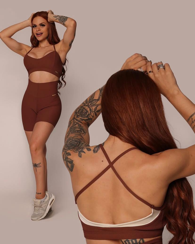 CONJUNTO TOP + SHORT JUST COMUM CANELADO MARROM