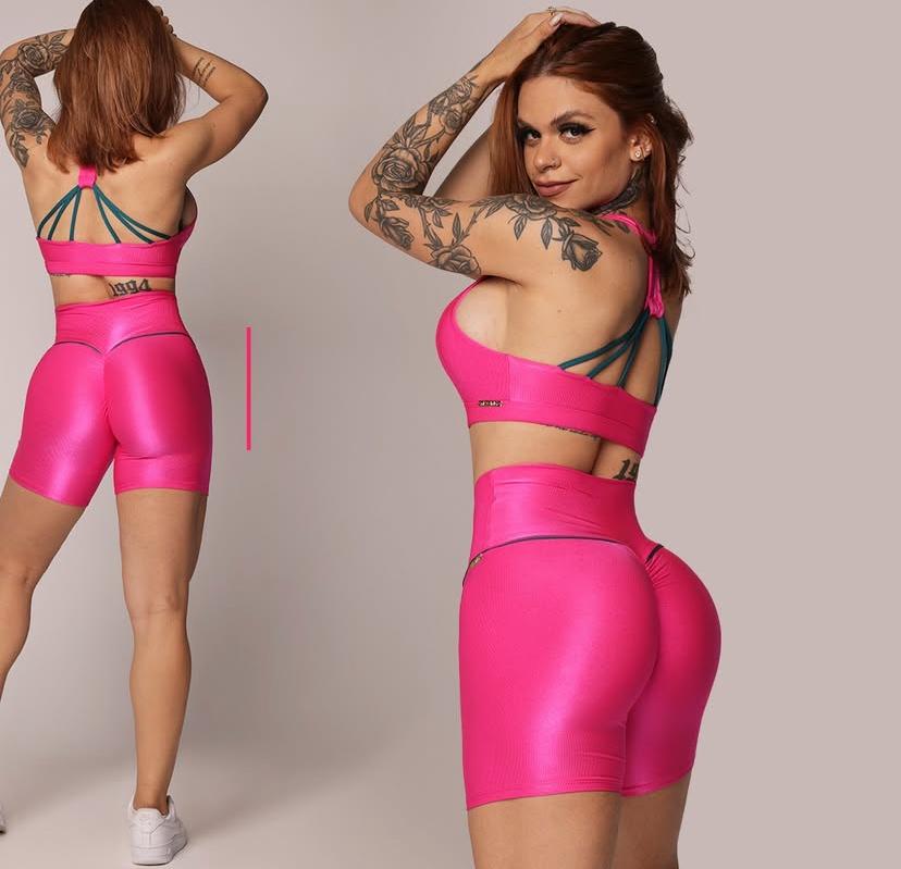 CONJUNTO TO + SHORT EMPINA BUMBUM GLOSSY PINK