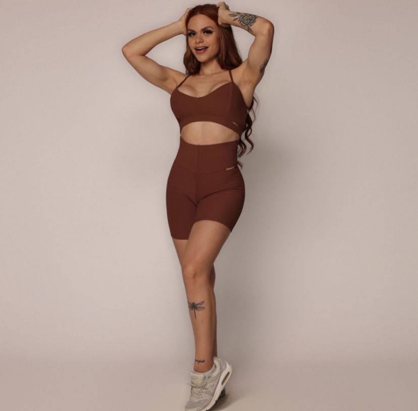 CONJUNTO TOP + SHORT JUST COMUM CANELADO MARROM