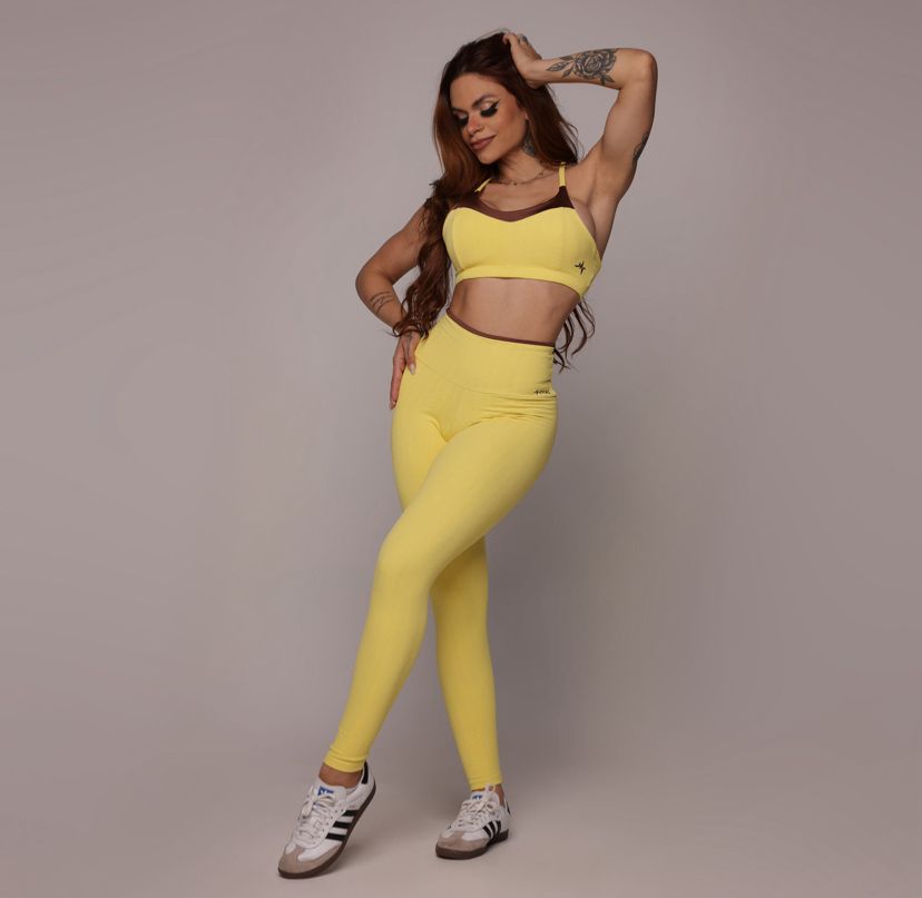 CALÇA FLARE CANELADO DOCE DE LEITE + TOP