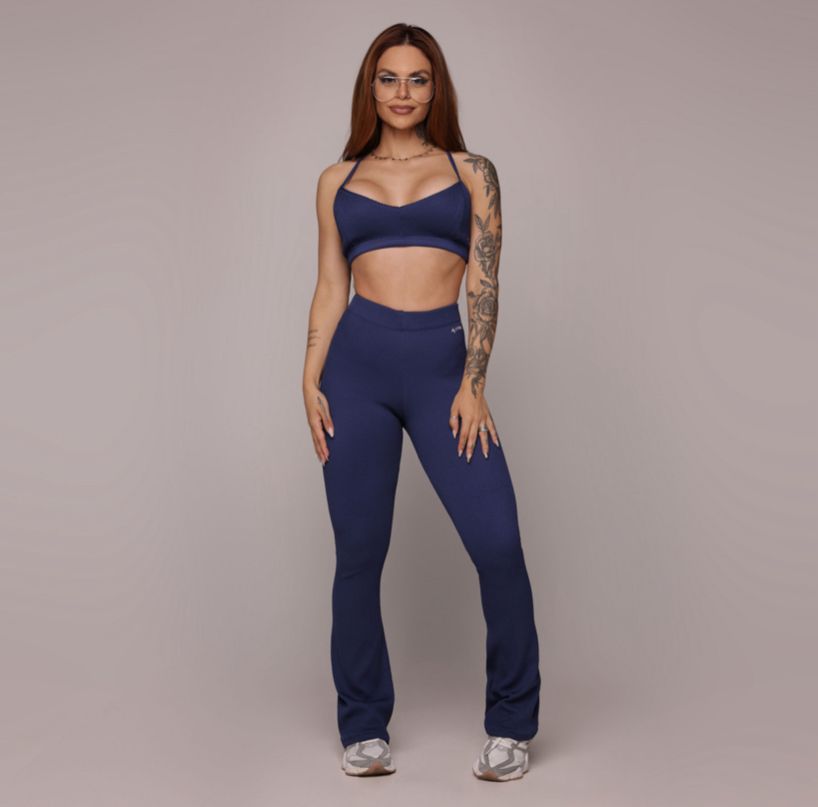 CALÇA FLARE JACQUARD CANELADO AZUL