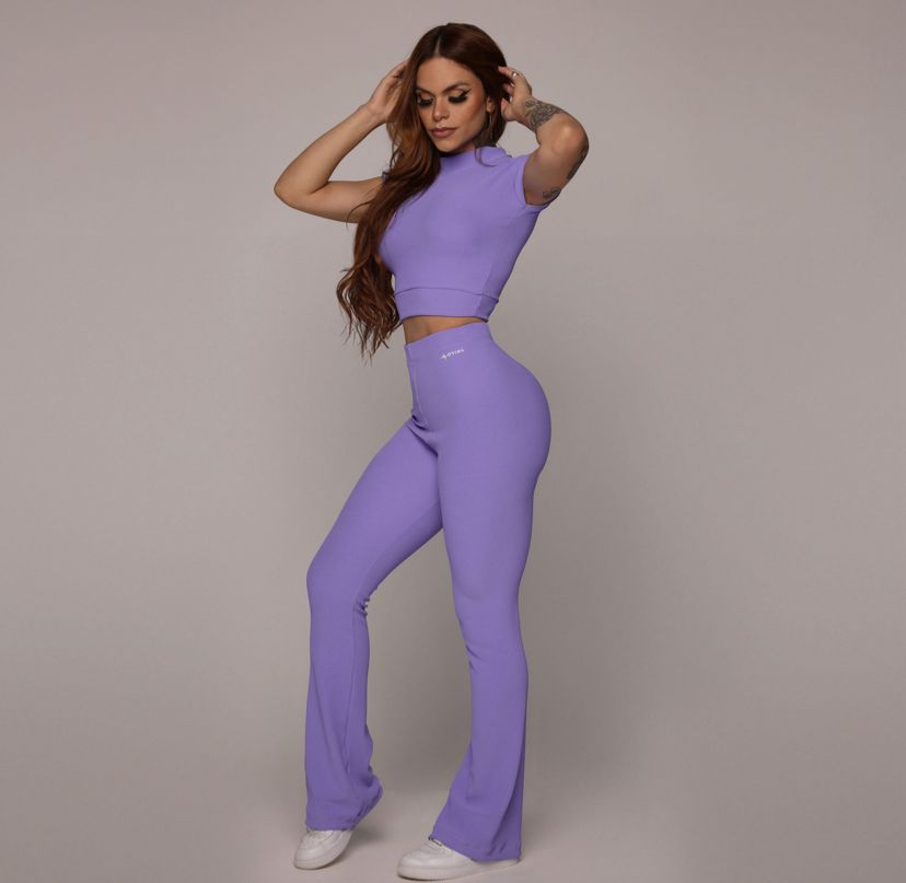 CALÇA FLARE CANELADO LAVANDA + CROPPED