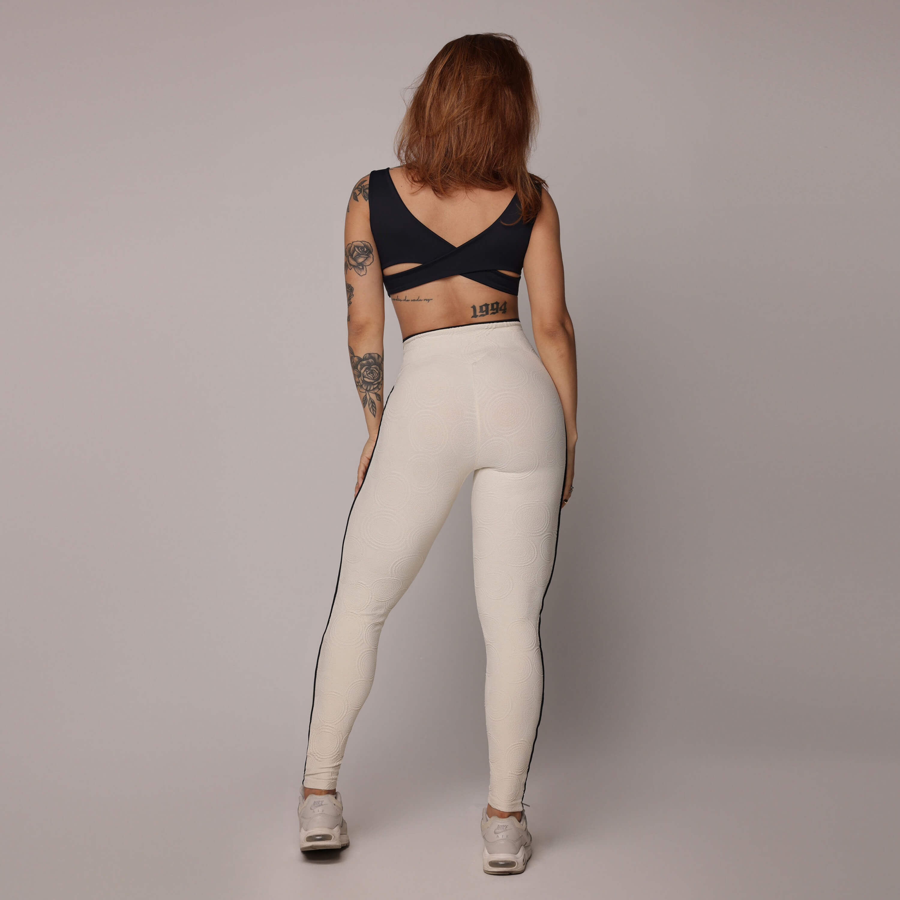 CONJUNTO TOP + LEGGING BICOLOR COMUM JACQUARD ROUND OFF WHITE