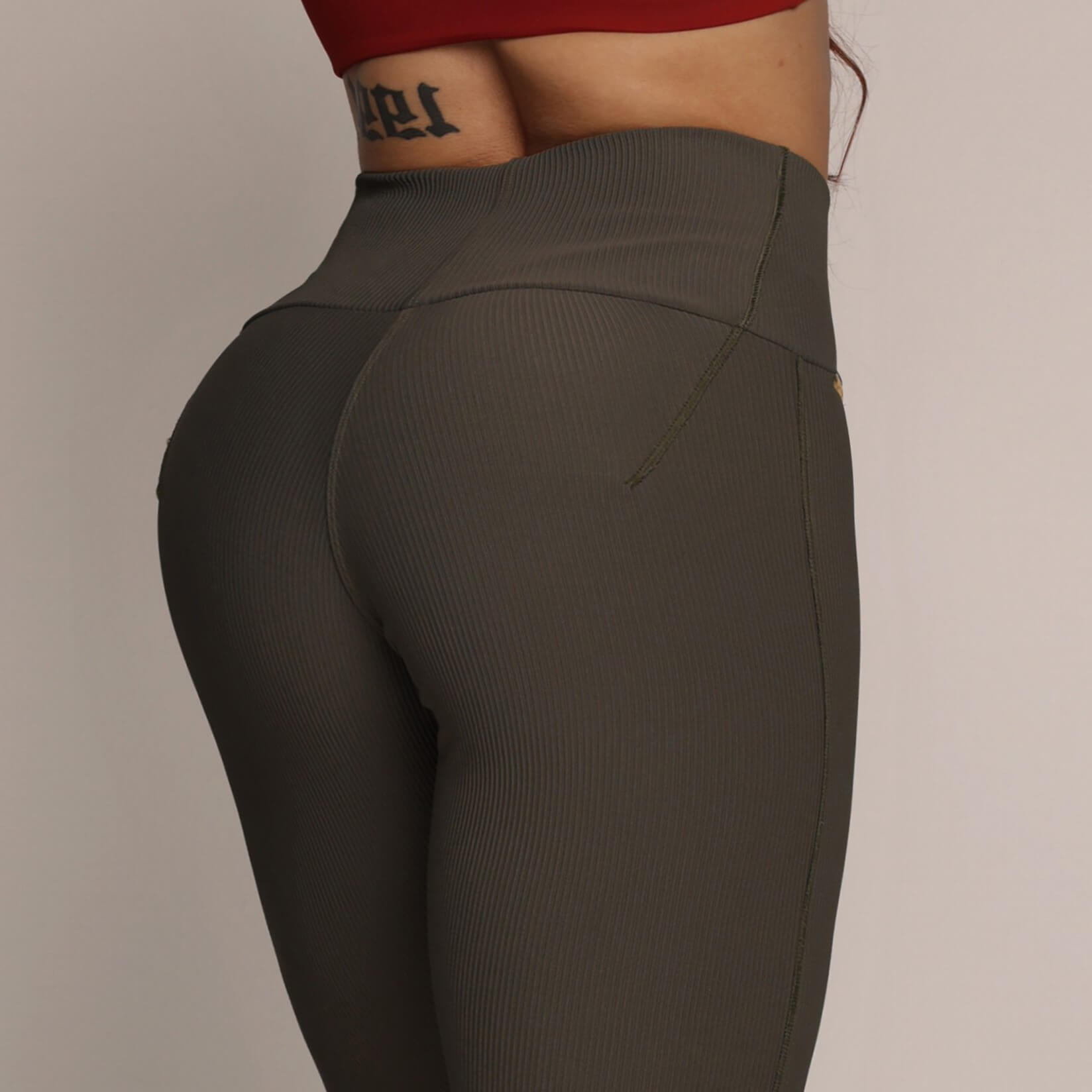 CONJUNTO TOP + LEGGING VISION JACQUARD CANELADO VERDE MILITAR