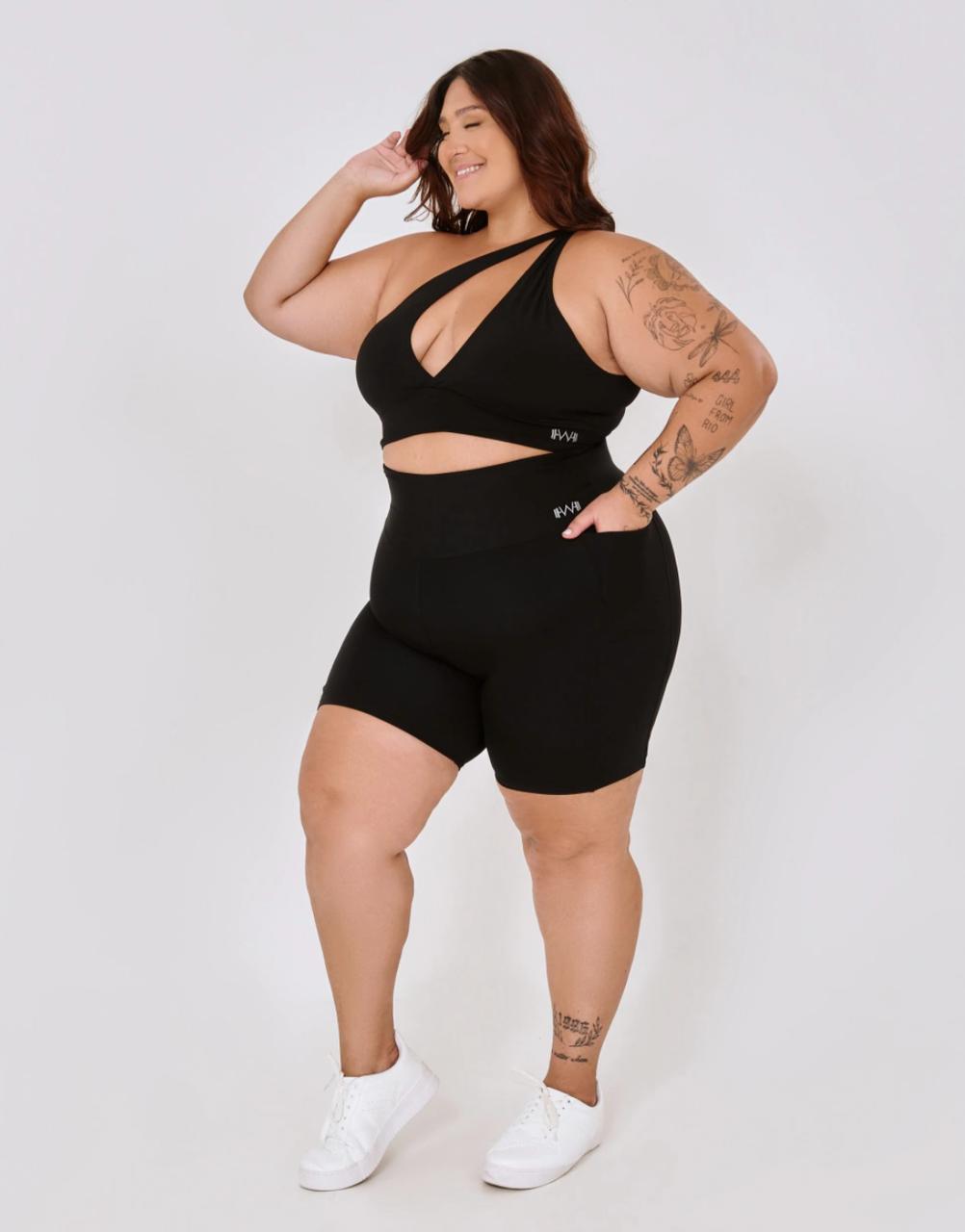 A Bermuda Canelada com Bolsos Plus Size é confeccionada em tecido microcanelado de poliamida, garantindo segurança e conforto para o seu dia a dia. O acabamento acetinado traz um brilho suave e elegante, que eleva o look com sofisticação. Com cós duplo e cintura alta, a peça oferece um ajuste perfeito ao corpo, modelando suas curvas com conforto. O recorte em V na parte de trás foi estrategicamente desenvolvido para valorizar o bumbum de forma natural e discreta, sem necessidade de costuras extras. Os bolsos laterais acrescentam praticidade, sendo ideais para levar o essencial, tanto nos treinos quanto em suas atividades diárias.