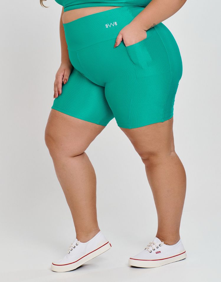 Bermuda Canelada Bolso (Plus Size) - Verde Enseada