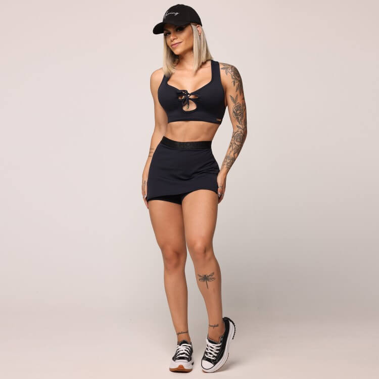 SHORT-SAIA FUNNY PRETO COM ELÁSTICO PRETO ABSOLUTO