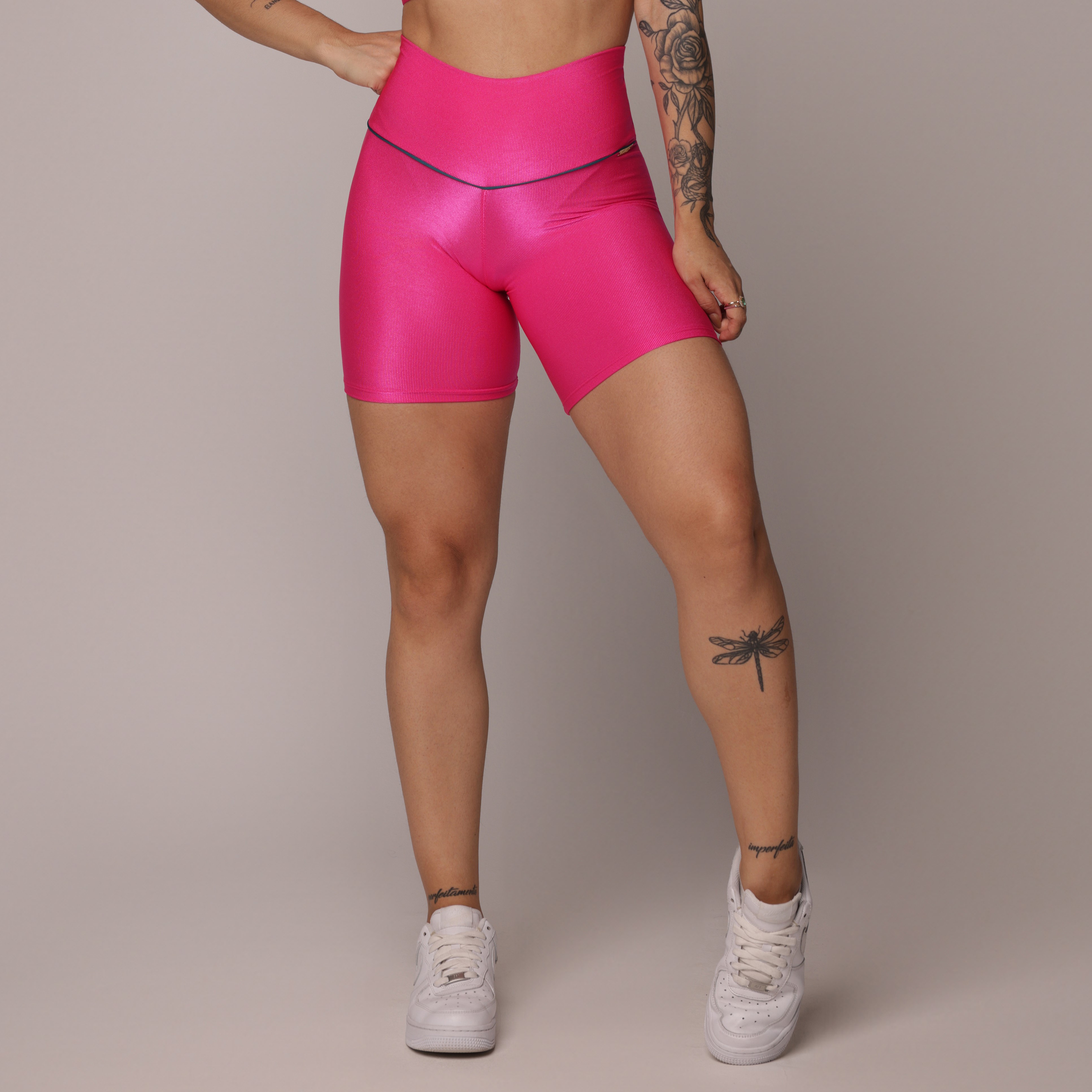 CONJUNTO TO + SHORT EMPINA BUMBUM GLOSSY PINK
